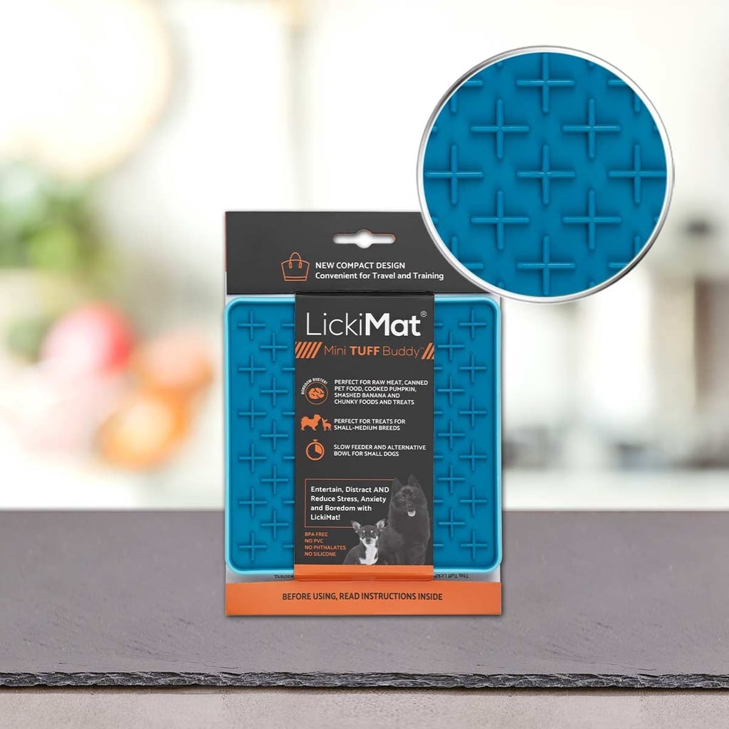 LickiMat Buddy Tuff je primeren za surovo, mokro, suho in tekočo pasjo hrano ter vse vrste pasjih priboljškov in namazov. Če tvoj kosmatinček nagajivo žveči ali ima nove zobke, potem je LickiMat Buddy Tuff prava izbira! Če imaš mladička, ki menja zobe ali razposajenega psa, ki žveči vse, potem prosim naroči tudi LickiMat Keeper™. Podlogo lahko uporabite u mikrovalovni pečici ali in/ali v zmrzovalniku. LickiMat Buddy Tuff je primernen za pranje v pomivalnem stroju.